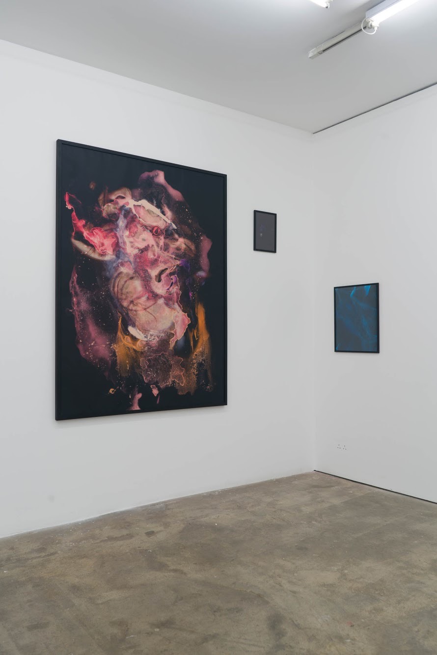 With no beginning or end it slips between the imagined and the index pulling at the surface of the image and reinvesting it with a human form of address. Bodies made, bodies grown, warm to cold, fully formed but fractured and out of place. Figures of meat and faces of render there are visual battles between micro and macroscopic of those looking out and others staring back leaking into spaces of discomfort and the sublime.